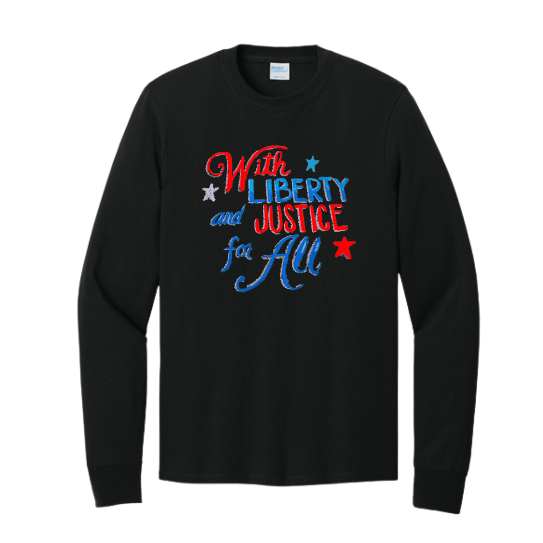 Celebrate your values with this long sleeve tee featuring the empowering message ‘With Liberty and Justice for All.’ Perfect for casual outings or community events, this tee combines comfort with a meaningful statement. The soft fabric ensures all-day wear, making it an ideal choice for layering or standalone use. Whether you’re attending a rally or just enjoying a weekend brunch, this shirt helps you express your beliefs in style. Designed for versatility, this long sleeve tee can be paired effortlessly with jeans or shorts, making it a go-to option in your wardrobe. Its classic fit provides a relaxed silhouette that suits various body types, ensuring everyone can wear it with pride. Stand out while promoting a powerful message of equality and justice.